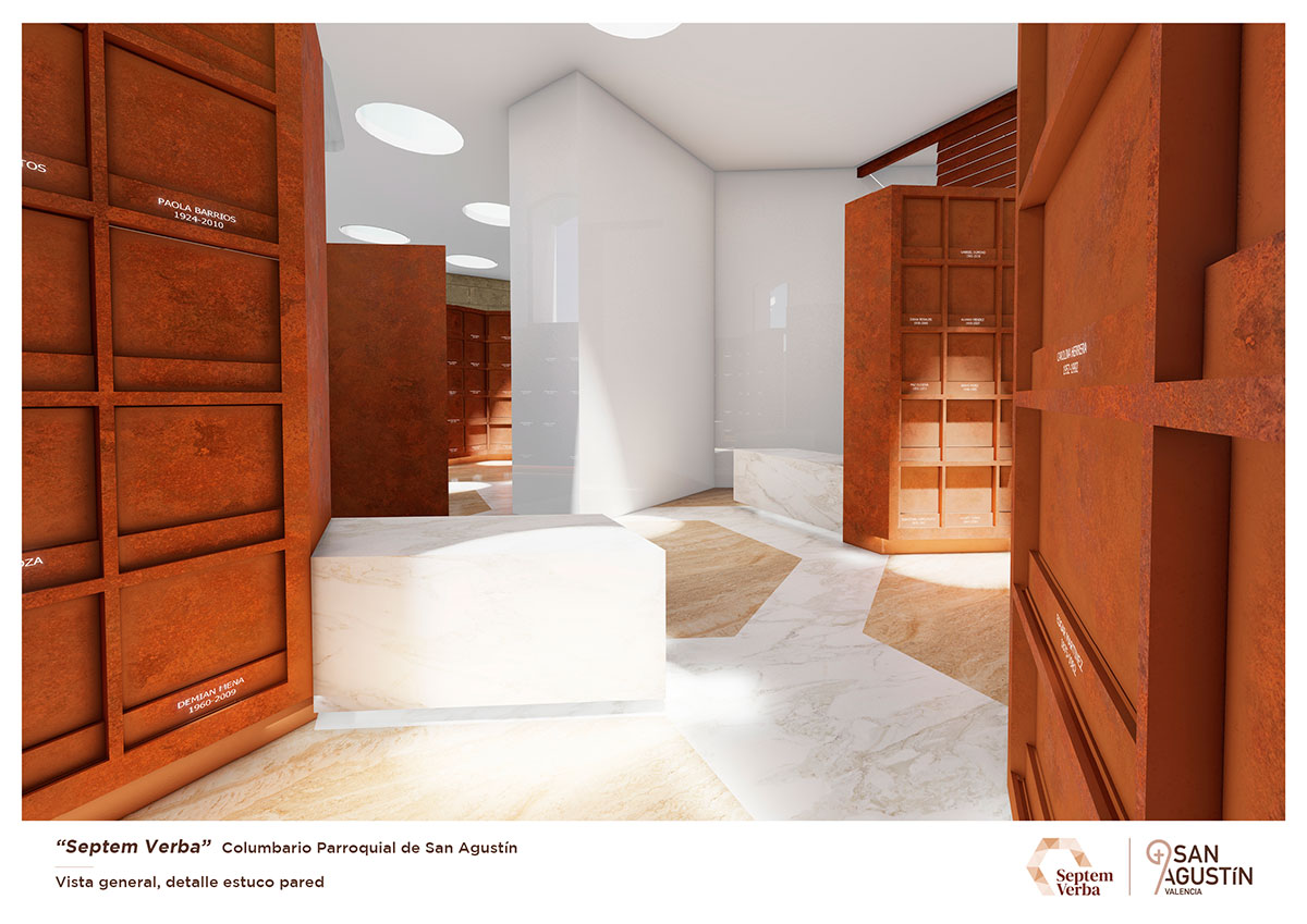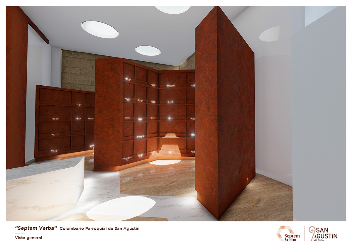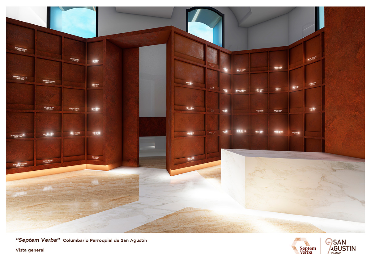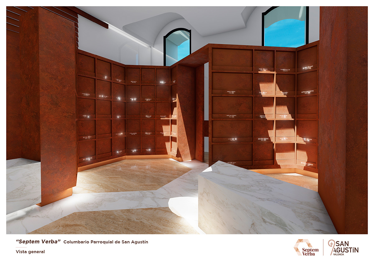 El Columbario de San Agustín, proyectado por el doctor en Arquitectura Jaime Aparicio Fraga, está inspirado en las Palabra de Jesús en la Cruz. Se han pensado siete pequeños espacios de Oración y Esperanza, presidido cada uno de ellos por una de estas Siete Palabras (Septem Verba) y que propician una suerte de catequesis para el visitante, ayudando a la trascendencia y a la Esperanza en la vida eterna.